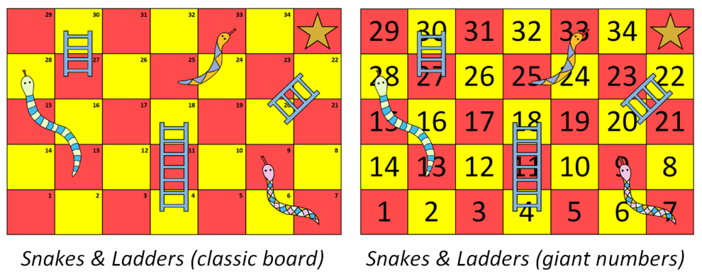 3) A print out of the Snakes & Ladders